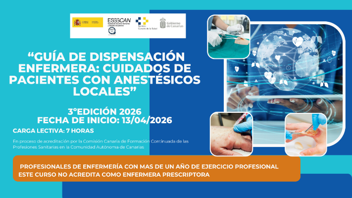 Acción formativa organizada por la Escuela de Servicios Sanitarios y Sociales de Canarias (ESSSCAN) en colaboración con la Dirección General de Programas Asistenciales de la Consejería de Sanidad del Gobierno de Canarias y dirigida a profesionales de Enfermería del Servicio Canario de la Salud.