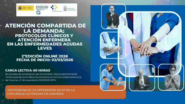 Acción formativa organizada por la Escuela de Servicios Sanitarios y Sociales de Canarias (ESSSCAN) en colaboración con la Dirección General de Programas Asistenciales de la Consejería de Sanidad del Gobierno de Canarias y dirigida a profesionales de Enfermería del ámbito de Atención Primaria.